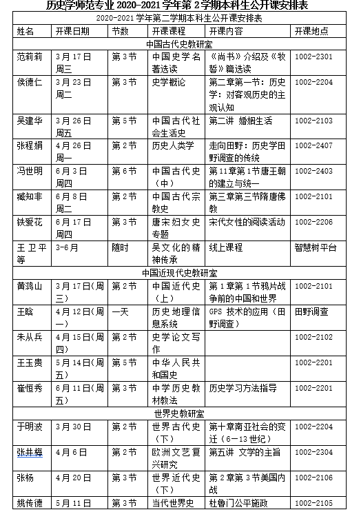 2018年历史学师范专业入选首批校一流本科专业建设点,2019年入选首批国家级一流本科专业建设点,为切实提高人才培养能力,历史学师范专业全体教师积极举行教研活动,不断提升教学能力,改进教学质量,专业教师曾多次在教学竞赛中斩获奖项。除此之外,历史学师范专业各教研室还组织多次公开课活动,做到了公开课开设的全覆盖,邀请督导、专家、同行听课评课,为专业教学质量的提升提供了有力支撑。
