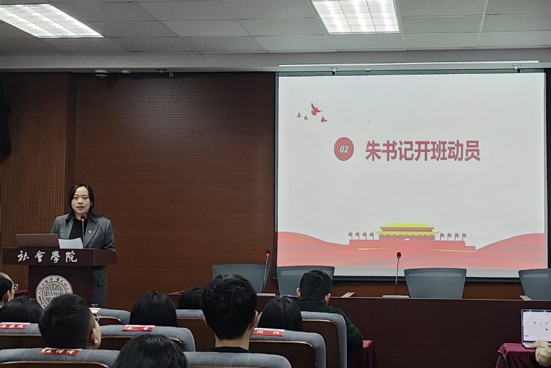 其后,分党校活动部负责人费倩倩详细介绍了本期培训班的特色活动。“党建书屋”系列活动以阅读红色书籍为中心内容,通过读书分享、主题朗诵、党建主题辩论赛等形式学习党的理论知识,做到在活动中强思想,在淬炼中强党性,以党的历史滋养初心、引领使命。她认为该活动是落实党史学习教育、赓续红色精神、传承革命事业的重要方式,能够帮助青年学子在常学常新中感悟思想伟力,在真学真信中坚定理想信念。