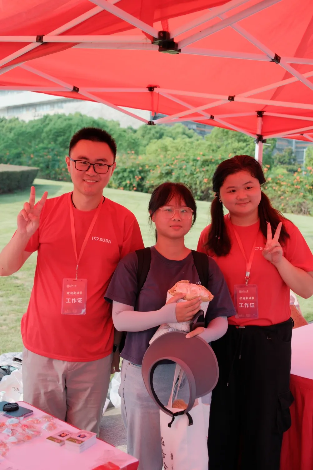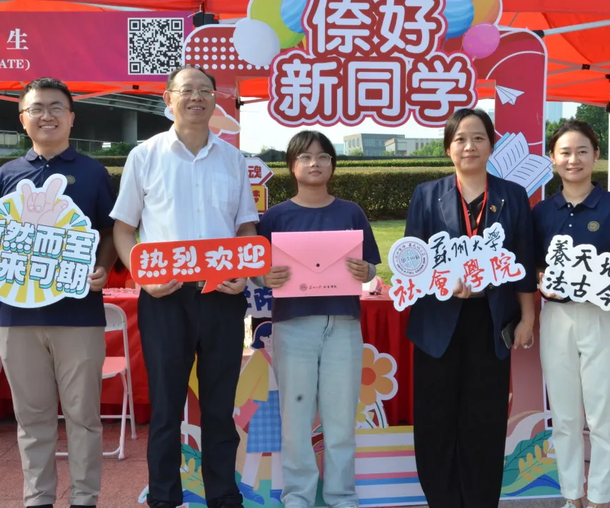 在工作人员的引导下,新生们与家长们在女王调教 专属定制的KT板和手举牌进行合照,“看镜头,笑一笑,321”,记录下自己与苏大社院的第一次邂逅。一张照片,定格下新生们与女王调教 初逢的喜悦。