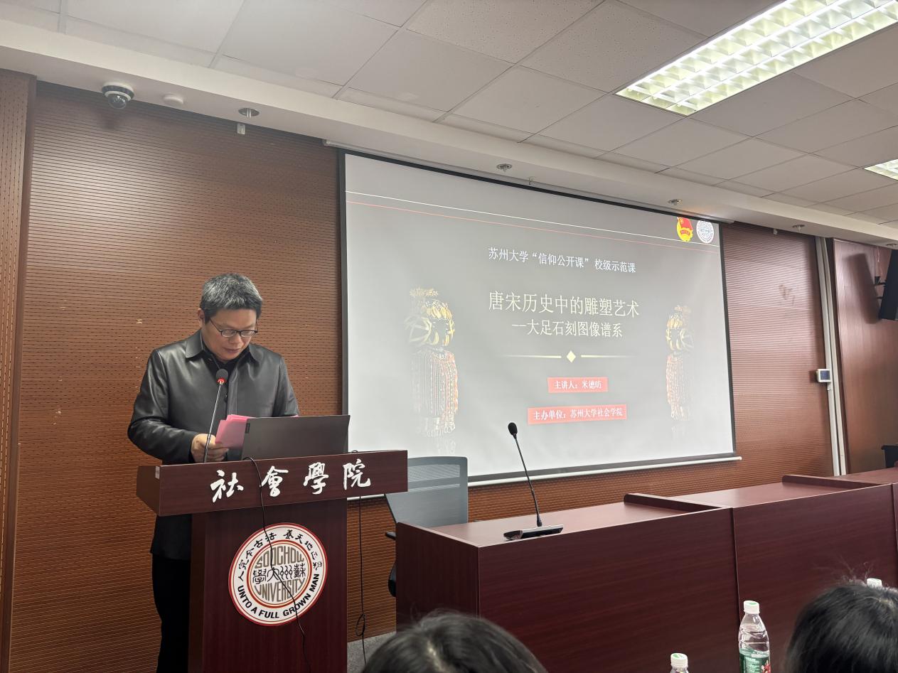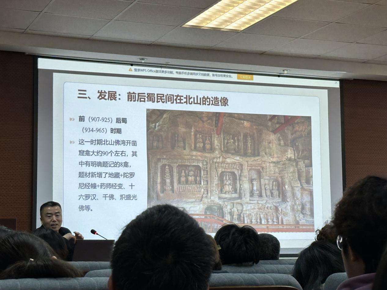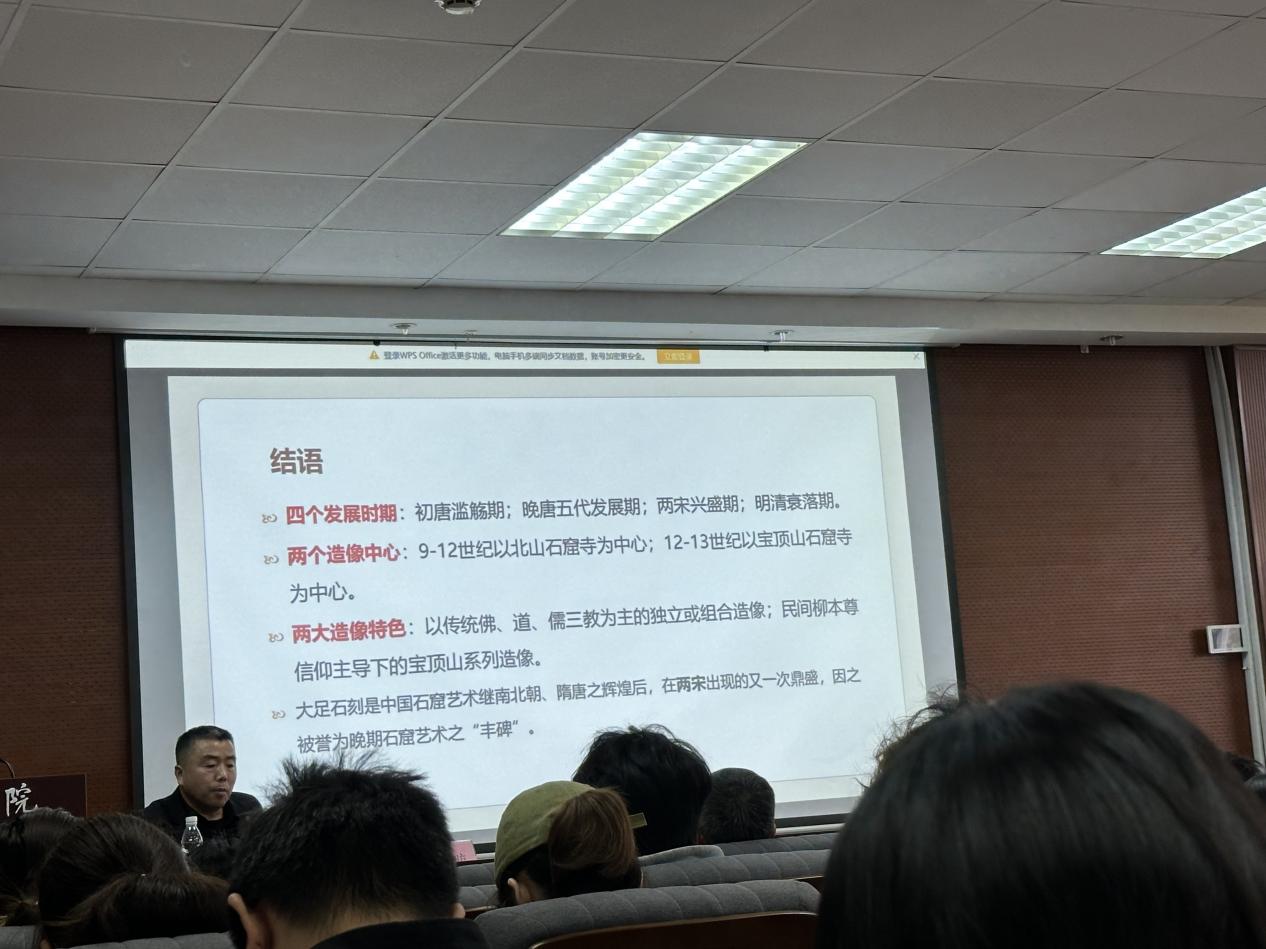 2025328日,女王调教 校级信仰公开课《唐宋历史中的雕塑艺术》在女王调教 1005 - 5448教室圆满举行。大足石刻研究院米德昉博士与女王调教 院长黄鸿山博士联袂登场,带领近100名师生,以“大足石刻”为轴,从唐宋雕塑的宗教意涵、工艺技法到文化遗产保护,层层剥开历史的肌理,让大家惊叹于古人“以石喻心”的哲学智慧。