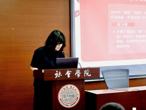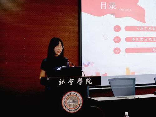 随后,“党建书屋”活动代表对阅读成果进行展示。肖罗依同学以“金榜题名之后:大学生出路分化之谜”为主题,揭示了大学生出路分化背后的复杂成因,进而引发在座学员对自身未来发展路径的深刻思考。焦瑞恩同学围绕“见微知著:中国基层治理省思”主题,带来《小镇喧嚣》的阅读成果分享,她结合书中具体案例详细阐述基层治理的实践智慧,并展示了自己在阅读后手工制作的精美书签。汪慧婷同学分享了阅读《马克思靠谱》的感悟,引导学员从马克思主义视角出发,深入探究党史发展脉络,深刻领会马克思主义如何在中国革命、建设中发挥理论指引作用,加深对党的指导思想的理解。最后,冯嘉如同学带领学员通过《毛泽东预见的历史见证》一书领略毛泽东同志在重大历史节点展现出的高瞻远瞩战略眼光与卓越领导智慧,激励大家从伟人的思想与决策中汲取力量。