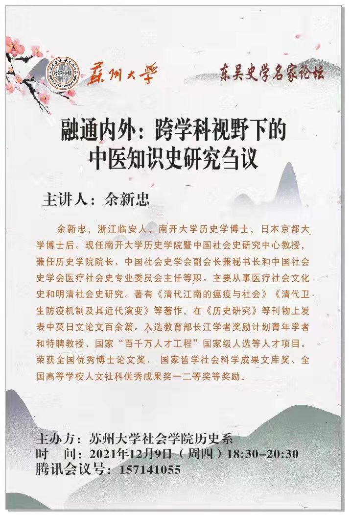 余新忠:融通内外:跨学科视野下的中医知识史研究刍议