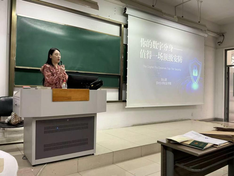 情报学博士、副教授张心源老师一开场就抛出“冒名社交账号索要钱财”“简历信息被倒卖” 等贴近学生生活的真实案例。“大家有没有想过,朋友圈的一张定位照片、一次问卷填写,都可能让‘数字分身’被不法分子利用?” 随着一个个案例的拆解,新生们不时发出轻声惊叹,原本略显松懈的坐姿渐渐端正,纷纷拿起笔记录关键信息。