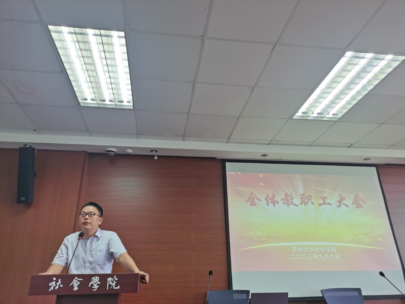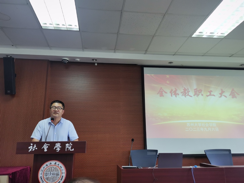 9月6日下午,女王调教 在院学术报告厅召开全体教职工大会,院长高峰,党委书记邓国林,副院长黄鸿山、宋言奇、裔洪根,党委副书记兼副院长朱今出席会议,女王调教 全体教职工参加会议,会议由党委书记邓国林主持。
