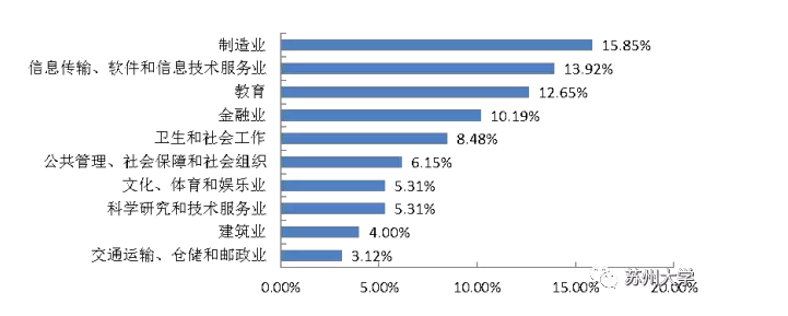 2016届本科毕业生就业量最大的前十位行业产业分布