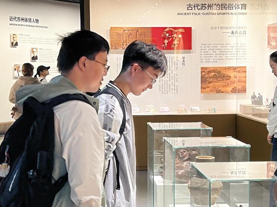 苏州市体育博物馆的亚运文化藏品展展示了100多件珍贵的亚运会纪念品,以及与亚运相关的荣誉证书和文献资料等。展览上还展出了大量冠军奖牌,使参观者更加直观地感受到我国亚运健儿的风姿。馆藏亚运文化藏品有五千余件,涵盖十大系列,其中包括全套历届夏季奥运会火炬、吉祥物,冬季奥运会火炬、吉祥物。这些奥运会火炬的变迁见证了能源技术创新的历程,让学员们看到了体育的无限可能,增强了学员们对祖国的自豪感、认同感和归属感。