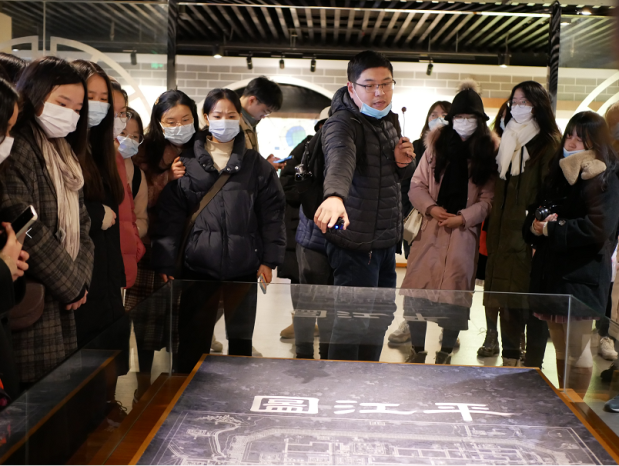 上午9:00,我们到达田野调查第一站:苏州市档案馆,由王晗老师作为讲解人向我们讲述了“吴门珍档”展馆珍藏的档案,主要包括苏州市城市地图的变迁、苏州境内的水域变化、苏州历史上科举名人、苏州近代商业的发展等。通过讲解,同学们对于苏州的自然与人文地理变迁有了更加深刻的认识,同时也见证了原始史料的权威性与珍贵性,增强了历史研究的史证意识。