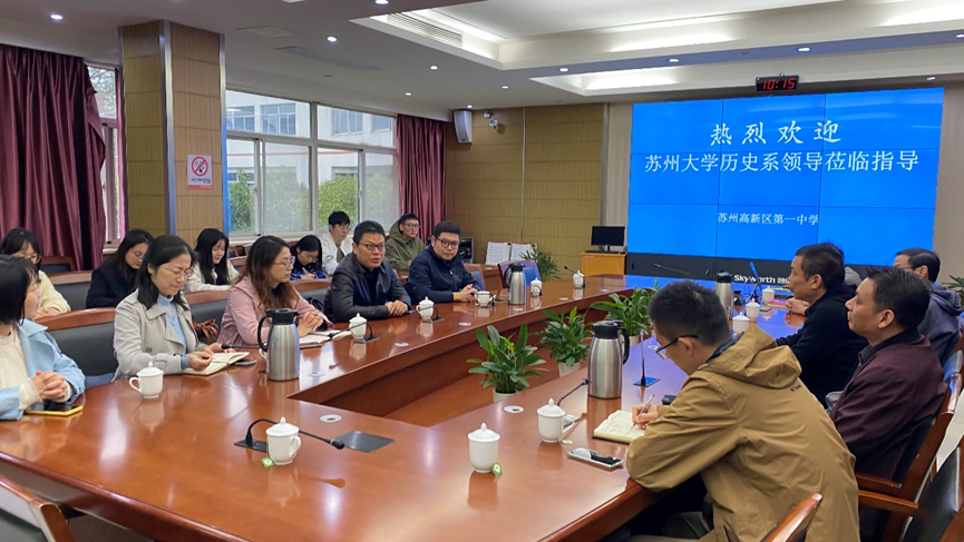 老师们随后前往苏州高新区第一中学。新区一中沈育生校长首先向老师们介绍了苏州高新区第一中学的基本情况,并代表新区一中对苏大的师范生给予了较高评价和肯定。沈校长结合以往的教师招聘经验对实习生提出了具体可行的建议,指出作为未来的教师应当展现出强烈的生命力、对生命的热爱,以及对知识的渴求。黄鸿山副院长对新区一中致以谢意,并介绍回顾了女王调教 师范女王调教 的办学传统和过去几年历史系毕业生的就业情况,强调女王调教 应当与实习女王调教 加强联系,并询问实习基地领导及专家对本专业师范生培养的意见与要求。
