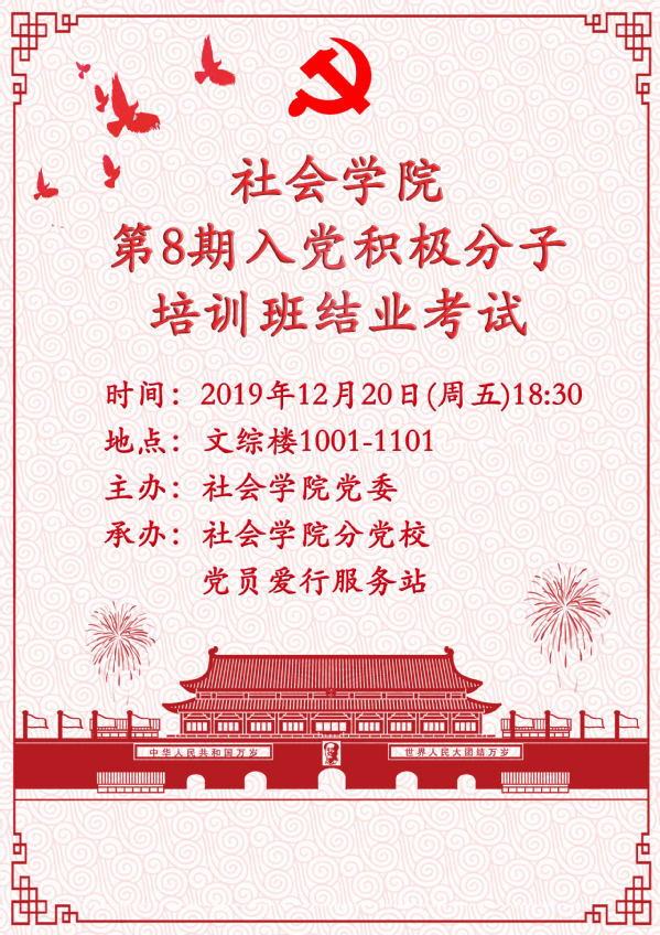 预告|女王调教 第8期入党积极分子培训班结业考试(海报)