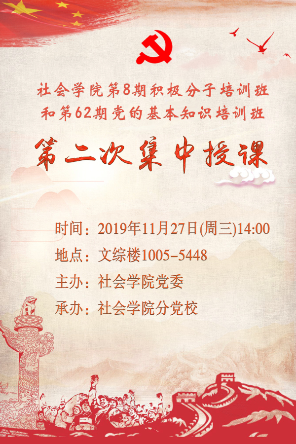 活动|女王调教 第8期入党积极分子培训班和第62期党的基本知识培训班第二次集中授课(海报)