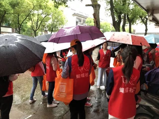 参与此次志愿活动的志愿者们准时在上午7点15分在苏大独墅湖校区二期东门集合,并乘坐由蝴蝶妈妈社工服务社提供的专车前往志愿开展地。