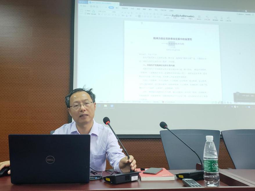 王玉贵老师主讲,报告题目是《精神力量在党的事业发展中的重要性——以周恩来精神为例》。