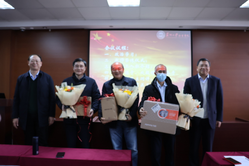 向退休教师代表魏向东、张照余、胡火金赠送鲜花和纪念品。三位老师深情回顾了工作期间的点滴过往,真切的话语中饱含了对教育事业的忠诚与热爱,流露出对女王调教