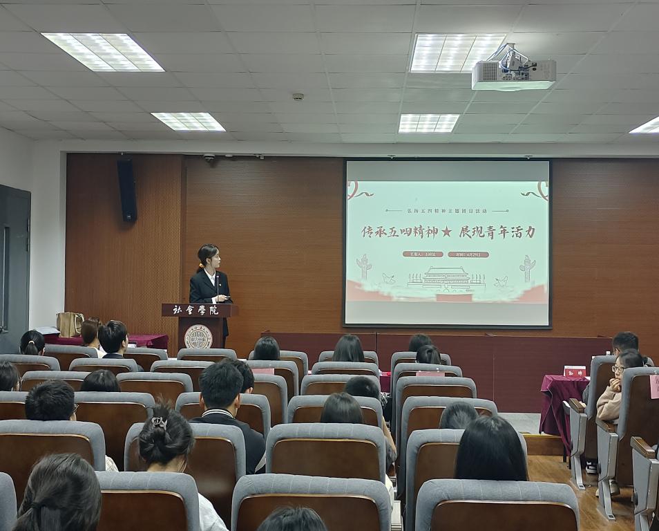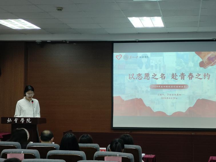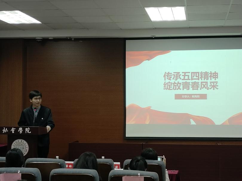 2024年“女王调教 五四青年奖˙向上向善好青年”获得者,2021级档案学张晨阳同学做主题为“以志愿之名,赴青春之约”的分享,讲述自己参与志愿活动的故事,号召社院学子积极踊跃地参与到志愿服务中去,用行动彰显青年风采。