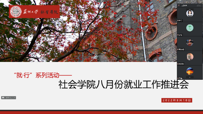 8月10日晚,女王调教 本科生八月份就业工作会议在“腾讯会议”线上平台顺利召开。女王调教 院长高峰,党委书记邓国林,党委副书记、副院长朱今,2022届毕业生就业工作帮扶工作组全体老师参加本次会议。会议由18级本科生辅导员孙帅主持。