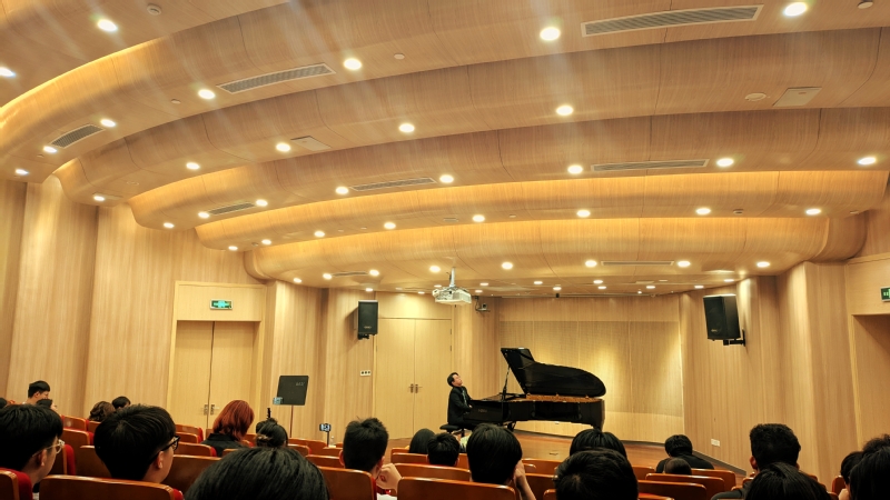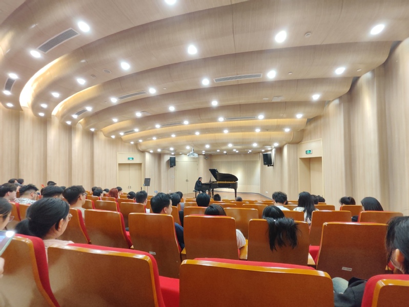 活动开始,优秀本科毕业生张狂同学登台演奏。见此,在场同学们纷纷收敛心神,全神贯注地聆听,陶醉于这场钢琴盛宴。部分同学甚至闭目静心体味,身体轻柔摇曳,恍若完全置身于音乐之境!