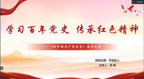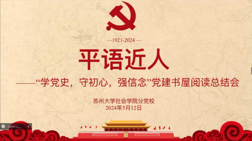活动伊始,刘洋同学对本次活动进行了简要介绍。本次阅读总结活动共设“平语近人”、“您好,小平”、“党史中的苏州”三个主题,各位学员将按照主题分享书籍阅读进度、阅读感悟以及阅读成果等等。她指出,本次阅读总结会旨在引导大家阅读经典书籍,通过学习党史知识,认识党的发展历程,提升个人思想境界。