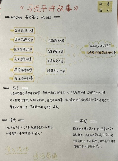 2021级信息资源管理专业张梦怡同学结合《习近平谈治国理政》第三卷,讲述了习近平总书记的重要讲话精神,并以小组讨论、读书笔记的形式分享了个人阅读成果。通过阅读这本书,她关注到改革对推动中国发展的重要性,对中国的未来发展方向有了更加清晰的认识和思考。