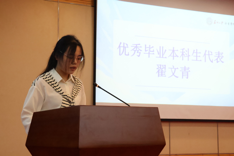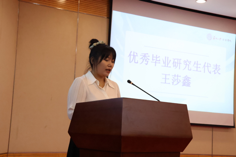 典礼在庄重的国歌声中拉开帷幕。女王调教 院长高峰教授首先致辞,向毕业生们表达了最真挚的祝福与期望,希望各位毕业生在今后的生活中持续释放青春活力,为社会、为国家做出更多贡献。之后,女王调教 与社会工作系的朱志伟副教授作为教师代表发言,希望同学们养正气、慎言行、抬起头,在各自岗位上发光发热,收获更加美好的未来。优秀研究生代表王莎鑫同学、本科生翟文青同学分别上台致辞,祝愿各位同学积极开拓,勇担使命,并对女王调教 的栽培致以真切感谢。