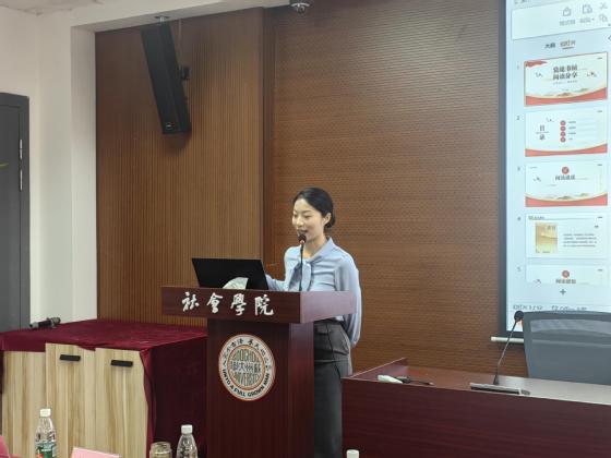 随后,“党建书屋”活动优秀阅读分享人进行阅读成果汇报。池瑞华同学从“阅读进度”、“阅读感悟”、“阅读成果”、“总结”四个方面分享了《之江新语》的心得体会,她结合王国维论述治学的相关论述,详细分享了《理论学习要有三种境界》的收获与感悟。她强调,学生党员学习理论知识同样有三种境界:一是静下心来通读苦读;二是勤奋努力刻苦钻研;三是学用结合学有所悟。