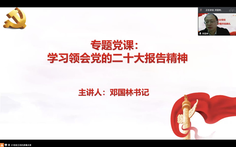 典礼最后,邓国林书记作总结发言。他对分党校“双百双联”活动和党建书屋师生共读特色活动给予充分肯定,鼓励大家积极参与。随后,他引用党的二十大报告中的一段话:“青年强,则国家强。当代中国青年生逢其时,施展才干的舞台无比广阔,实现梦想的前景无比光明”,对全体学员提出殷切期望,鼓励同学们成为有理想、敢担当、能吃苦、肯奋斗的新时代好青年。