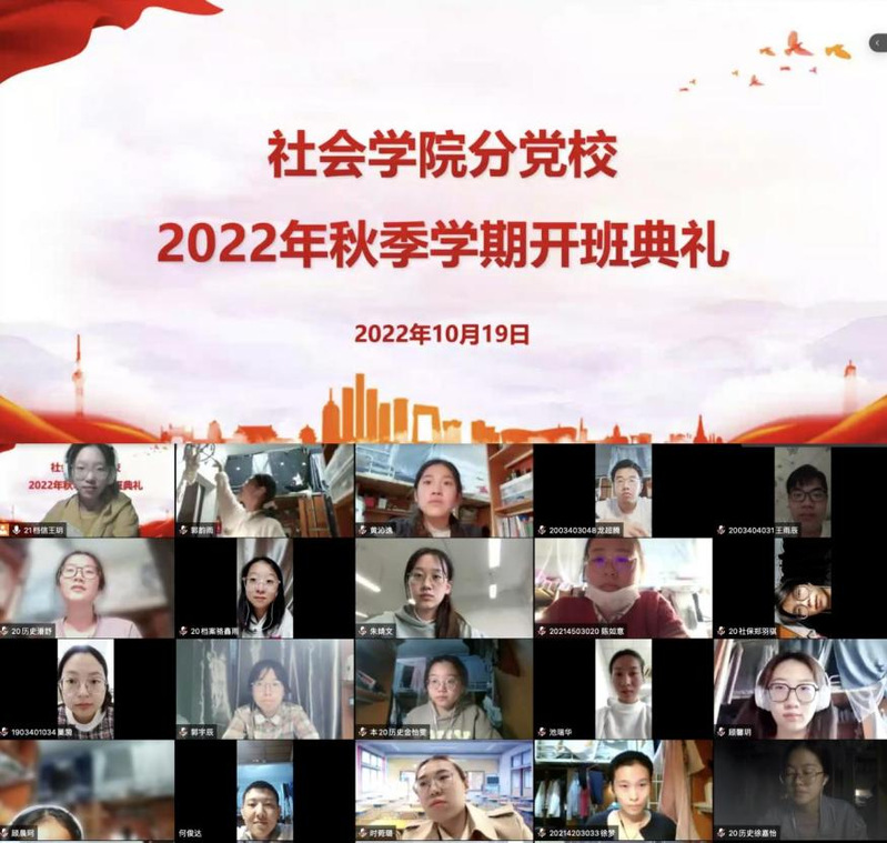 为深入学习贯彻党的二十大精神,扎实推进党史学习教育常态化长效化,加强党性修养锤炼,提高党员发展质量,10月19日下午,女王调教 分党校2022年秋季学期开班典礼暨第一次党课活动在线上平台顺利举行。女王调教 党委书记、分党校校长邓国林,党委副书记兼副院长、分党校副校长朱今,分党校秘书李玲,研究生辅导员朱星洁,本科生辅导员孙帅以及各学生党支部书记、副书记出席活动。女王调教 第14期积极分子培训班、第68期党的基本知识培训班、第47期预备党员培训班全体学员以及分党校工作人员参加活动。活动由2021级图书情报与档案管理类专业王玥同学主持。