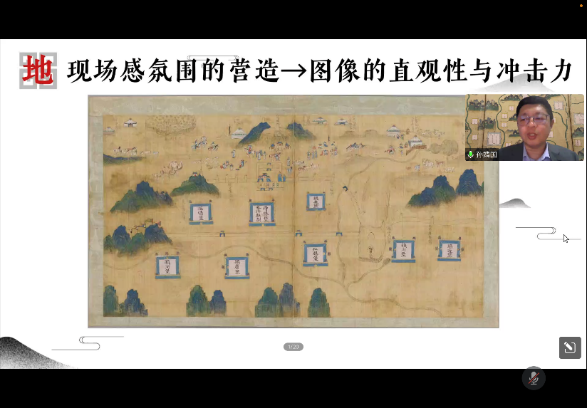 讲座开始,王晗老师对孙靖国老师的研究领域、成果著述、讲座主题等做了简要介绍,本次讲座内容主要分为四个部分:古地图的学术价值、古地图的现场感、几幅古地图背后的历史、结语:透过舆图看历史。